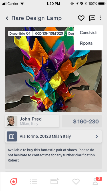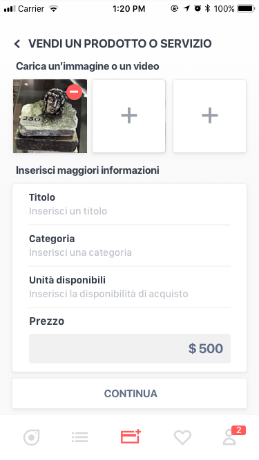 Scatta le foto del prodotto, descrivilo come meglio puoi, decidi a che prezzo proporlo e per quanto tempo rendere attiva l’offerta. Ora pubblicalo! Appena ti arriverà la conferma di pagamento, vai a comprare l’articolo offerto per conto del tuo nuovo Cliente. Se invece hai in programma uno spostamento che ti porterà in un interessante luogo d’acquisto da condividere (Outlet, Biglietteria concerti, Apple Store per nuovi arrivi, Svendite…), potrai avvisare gli utenti dando loro un appuntamento, caricando un "annuncio in Agenda”, così che ti possano seguire nel momento esatto in cui pubblicherai le tue migliori proposte per loro.